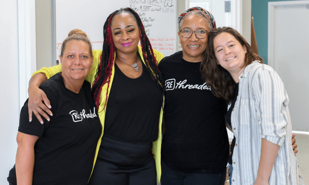 “I remembered that I can do great things, and I have seen real change in my life. I have been empowered in my journey of healing and growth being surrounded by a like-minded community of women at Rethreaded. I am so proud of the life I have built with a job I love, a house of my own, the ability to be creative, and six years sober.”